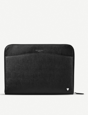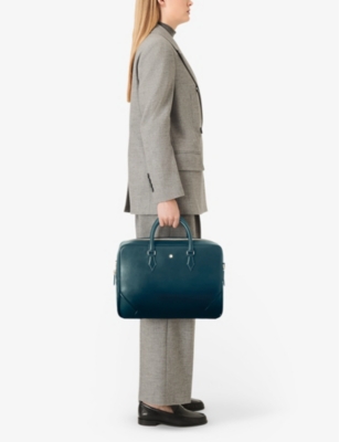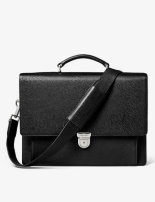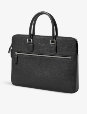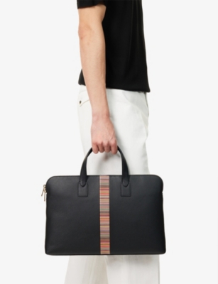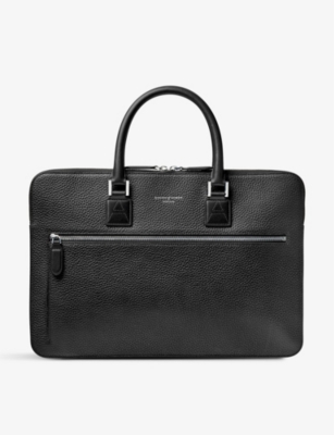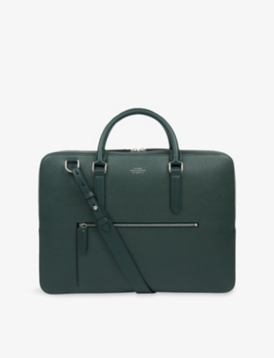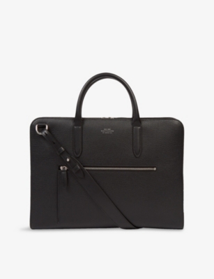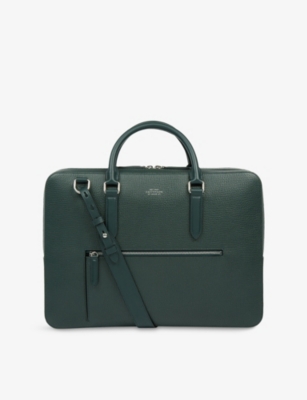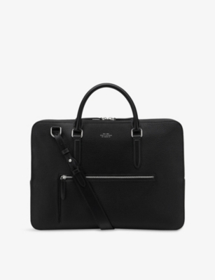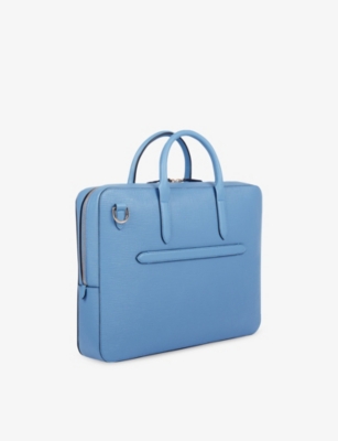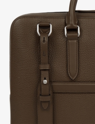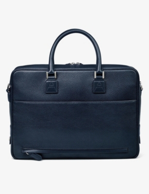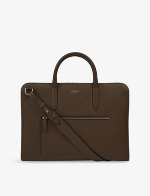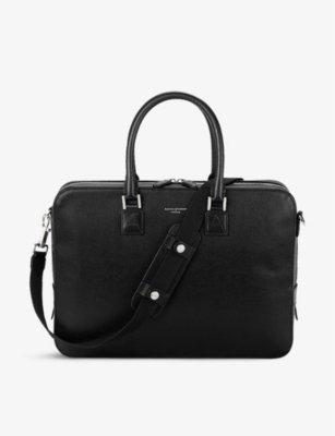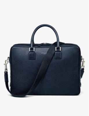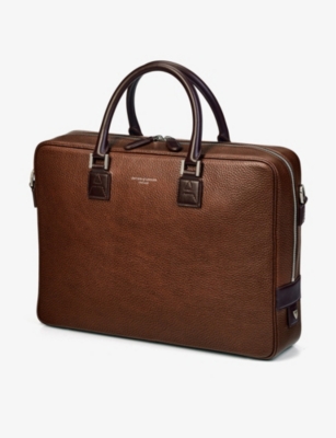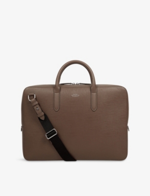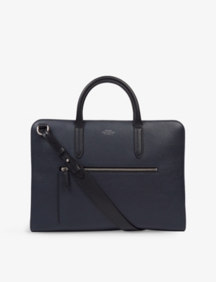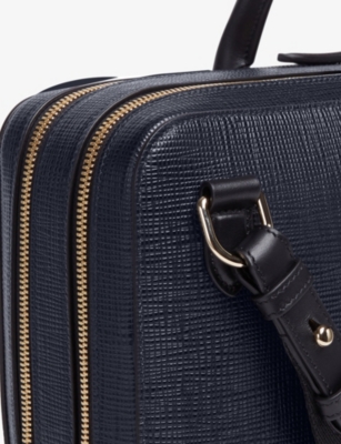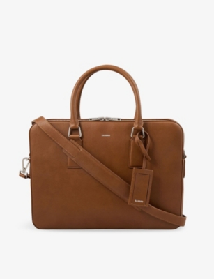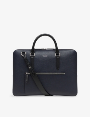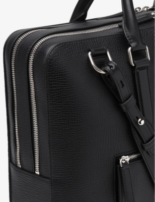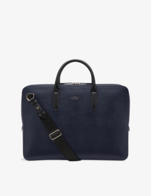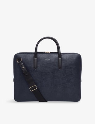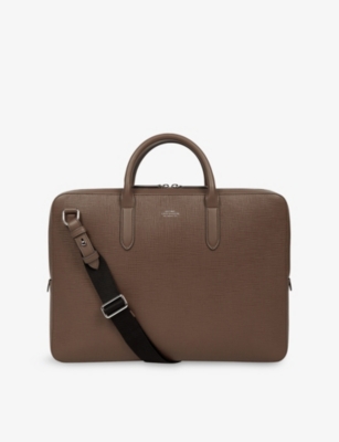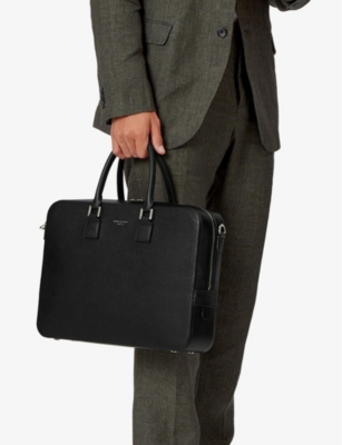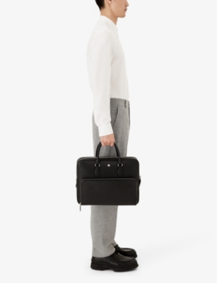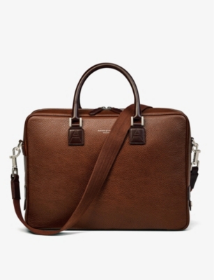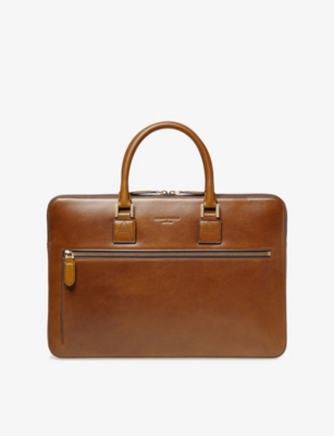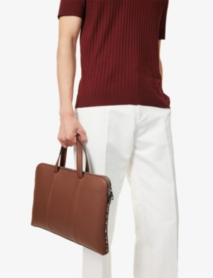 Our men's leather laptop bags are carefully constructed to protect your tech, wherever you're working from today. Cushioned sleeves and zip-up pouches keep contents secure, while structured shells offer an added defence against unexpected bumps in the road. Practical handles and shoulder straps across the selection make transportation simple. Look out for subtle branding on each piece: neat monikers pop out in metallic lettering and smart logos are embossed on metalwork for that hallmark of quality.