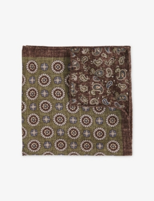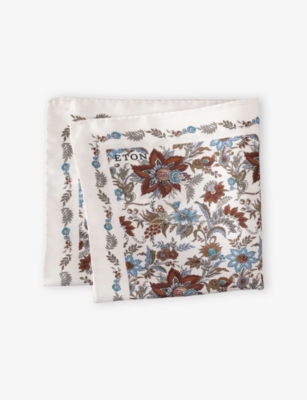 Our range of designer pocket squares is brimming with bold patterns and colourful designs. If you like to keep things classic, opt for a polka dot or stripe print. For people who gravitate towards statement items, swirling paisleys and repeated logo motifs appear throughout. Nature-lovers will be delighted by our patterned pocket square collection inspired by flowers and fauna. Think watercolour-inspired blooms, enchanting bird graphics and illustrations of rolling landscapes. As for the colour palette, explore everything from understated grey and cream hues to rich reds and deep blues. For two pocket squares in one, select a double-sided design, which you can reverse for a whole new look.