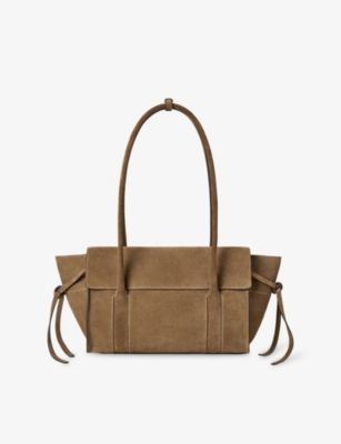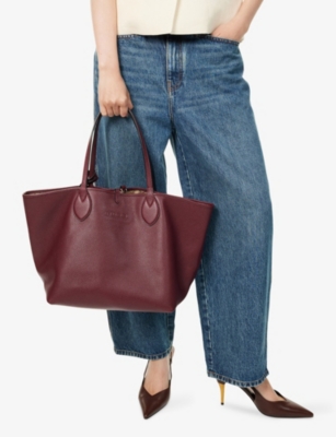 Whether you're swinging it at your side in a devil-may-care fashion or enjoying the convenience of an easy grip for stowing it on a table or under your desk, you'll find what you're looking for in our collection of leather top-handle bags. These deliciously varied options range from sculpturally structured shapes to soft and supple totes. For a strong impact that will radiate against dark clothing, choose from bright colours like lemon yellow or shocking turquoise. Restrained and traditional hues from warm chestnut to shiny black patent have a versatile and long-lasting charm that will take you from boardroom to party.