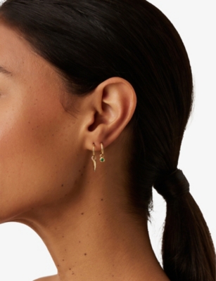 Tennis Charm 18ct Yellow Gold Vermeil and Emerald-Green Nano-Crystal Mini Hoop Earrings- Price:£75.00