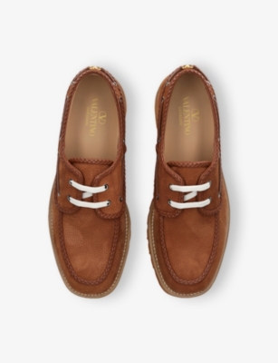 Braided-Trim Suede Boat Shoes