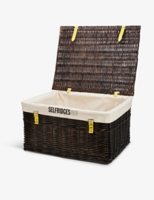 Our collection of logo-embroidered wicker hamper baskets at Selfridges can be fully customised - just select the recipient's favourite treats to make a hamper basket that is truly one-of-a-kind. You can fill them with food, wine, cheese, candles, and other indulgent treats. If you're looking for an extra personalised gift, you can make your own hamper gift card with a thoughtful message.