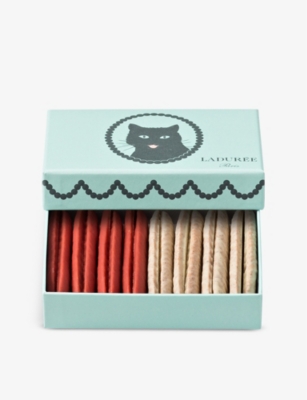 The recipe for the trademark Ladurée macaron hasn't changed in nearly 200 years. Tiny circles of delicate almond meringue are baked until just firm, left to cool and then sandwiched together with a delicious ganache filling. The real draw is the sheer variety of flavours on offer, each with its corresponding colour creating a visual delight, too. Our selections include caramel, chocolate, pistachio, raspberry, rose and vanilla, to name but a few. How does anyone choose a favourite? If you're looking to treat someone special, Ladurée gift boxes are a wonderful way to let loved ones know that you're thinking of them.