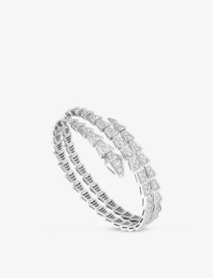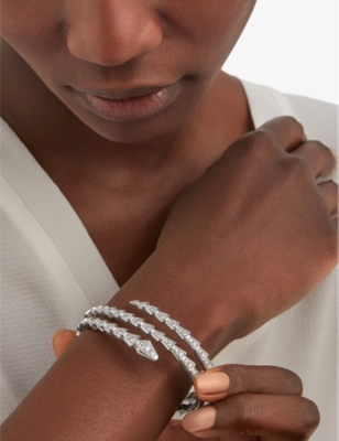 Serpenti Tubolari 18ct white-gold, 3.89ct diamond and 0.26ct emerald bracelet- Price:£65,000.00