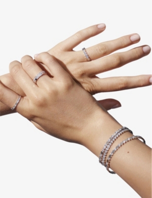 A brilliant-cut engagement ring is a sure-fire way to make a decadent impression. Multiple facets are designed to catch the light for maximum shine. When it comes to finishes, you can opt for matte for a unique and lived-in effect or choose high-shine for all-out glamour. Many styles also have subtle logo engraving for an opulent feel. Go for a piece with a single stone or one with several set into the ring itself. Look out for our green Project Earth banner to discover jewellery that has been made from eco-friendly materials and using responsible production practices.