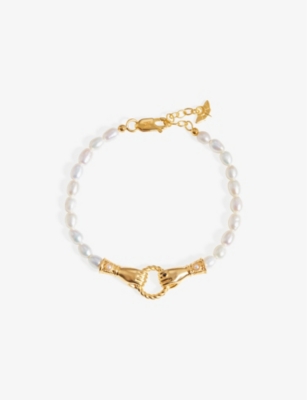 Lola Pearla 18ct gold-plated 925 sterling-silver and freshwater pearl bracelet- Price:£60.00