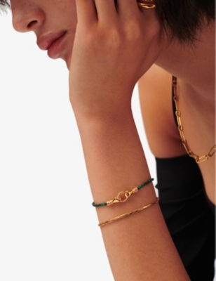 Deco 18ct yellow gold-plated vermeil sterling silver and green agate bracelet- Price:£198.00