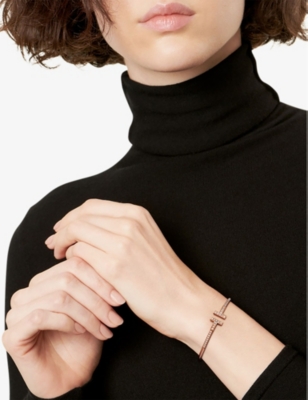 Tiffany T Pavé Wire 18ct rose-gold and 0.48ct brilliant-cut diamond bracelet- Price:£6,500.00