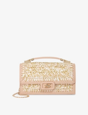 Skilled Metallic-Raffia and Faux-Leather Top-Handle Bag- Discount price:£47.00