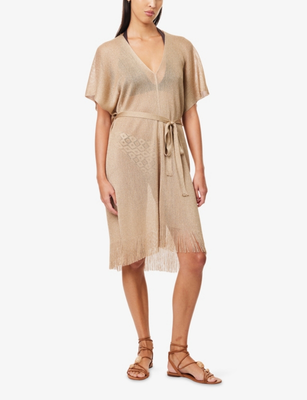 - Regular fit, double-breasted, notched collar, dropped shoulders, long sleeves, self-tie belt at waist, two side slip pockets, central rear vent, brushed finish