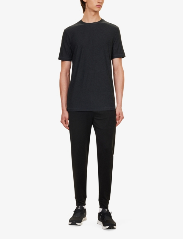 - Relaxed fit, ribbed crewneck, short sleeves, graphic print and stitching at front, text print at front and back