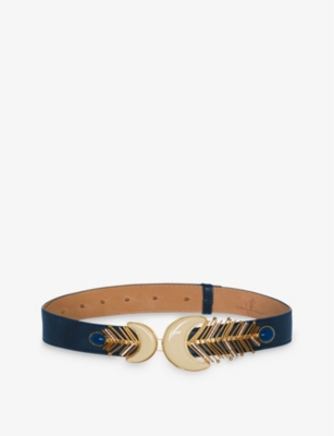 Sonia Petroff Shela 24ct gold-plated brass, Swarovski crystals, cabochon enamel lapis and leather belt- Price:£925.00