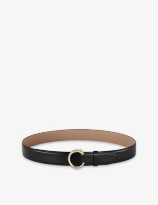 The definition of timeless? A classic leather belt in simple black or brown. Primed for pairing with jeans-and-tee ensembles or to cinch graceful evening dresses, our neutral-coloured pieces are both sleek and versatile. Not to mention the best bit: selecting an emblematic buckle. You'll be spoiled for choice with our range of designers, so you can slide on a belt with renowned initials or go for a closure embellished with chains, double straps or even a mini purse.