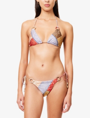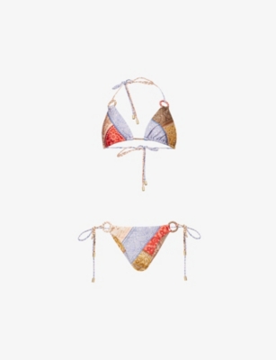 Heading off to sunnier climes? Don't forget to pack a Zimmermann swimsuit! We have matching bikinis in a rainbow of shades, from versatile neutrals to tropical tones such as sunset orange and palm-tree green. They're all made with just the right amount of stretch for flattering comfort, and are also crafted from quick-dry fabrics like breathable organic cotton. Look out for classic shapes like bandeaux and halternecks, plus options with removable padding for versatility. Choose intricate floral prints, or experiment with details such as ruffles and tassels. All-in-ones add some glamour to proceedings, with plunging V-necks and high-leg cuts.