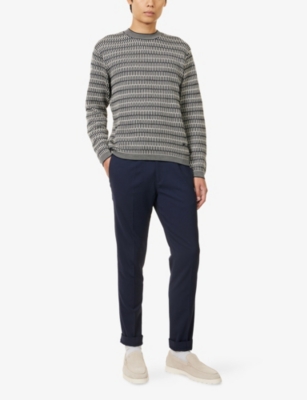 Explore an assortment of premium natural fibres in our selection. With advantages including breathability, freshness and cosiness, choices such as our merino wool knitwear come in snug and flattering fits. These gentle-on-the-skin yarns are the ultimate way to stay at just the right temperature as you demonstrate your strong style credentials. From jumpers to relaxed cardigans, we've curated a kaleidoscope of shades and patterns. Cable-knit or striped? Bold colour-blocking or giant logo-adorned? Find it in our collection, whether your taste is for minimalist neutrality or statement-making designs.