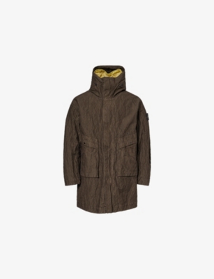 Garment Dyed Crinkle Reps logo-Patch Padded Shell Parka Jacket- Price:£1,185.00
