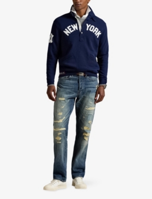 POLO RALPH LAUREN: Yankees Spread-Collar Cotton-Blend SweatshirtPOLO RALPH LAUREN: Yankees Spread-Collar Cotton-Blend Sweatshirt
