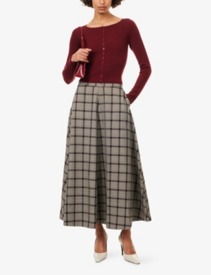 First Light Check-Pattern Woven Maxi Skirt