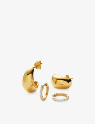 Mini Knot 18ct Yellow Gold and Silver-Plated Brass Stud Earring Set- Price:£155.00