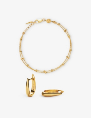 18ct Yellow Gold-Plated Vermeil 925 Sterling-Silver Huggie Earrings and Bracelet Set Worth £154- Price:£130.00