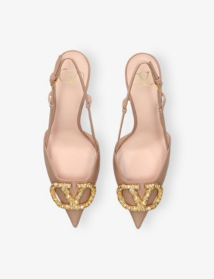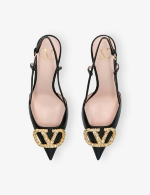 Vlogo 80 Crystal-Embellished Leather Slingback Courts- Price:£1,100.00